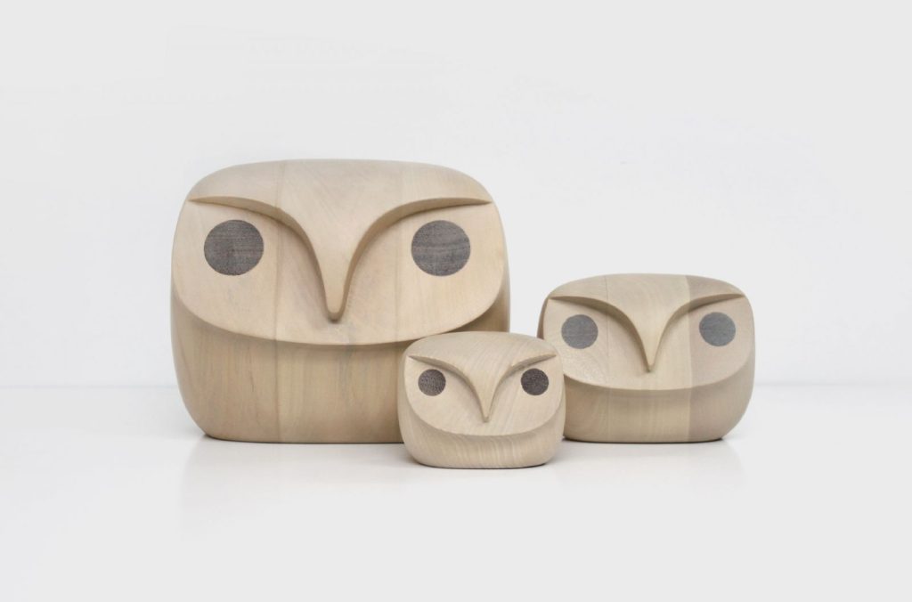 The owls are the result of the first collaborative project between StokkeAustad and Andreas Engesvik, Oslo. They were originally made for the exhibition Designblok in Prague. The Owls were modelled in polystyrene and then milled out of solid wood.